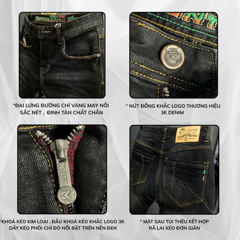 Jean Dài QCCC 3K-M9 Đen was chỉ nổi vàng đồng