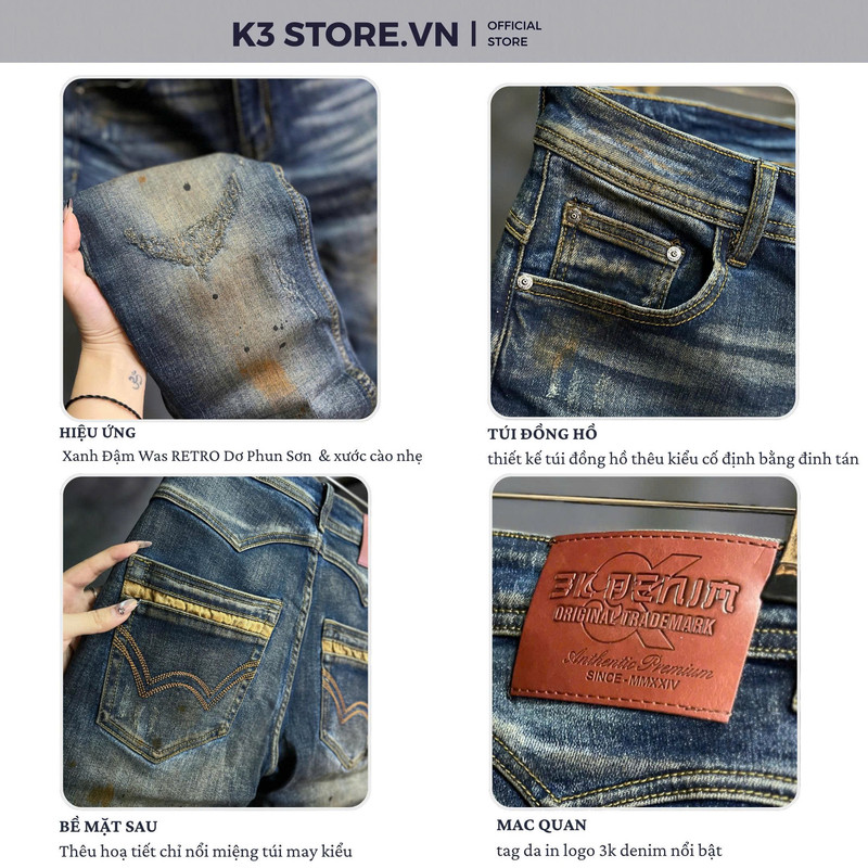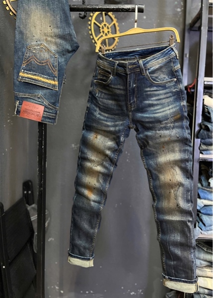 Jean Dài VIPSS26 -3K1947 Xanh was RETRO dơ sơn cam