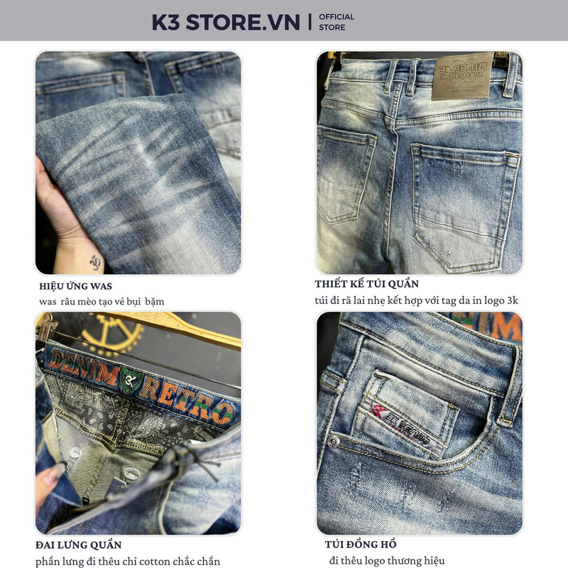 Jean Dài VIPSS26 -3K1948 Xanh bạc was rách lưng thêu
