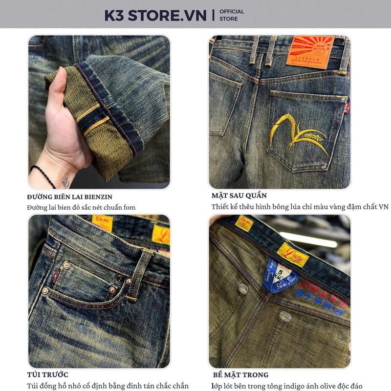 Jean Dài-QC VIP 5KM Selvedge - M2 thêu bông lúa