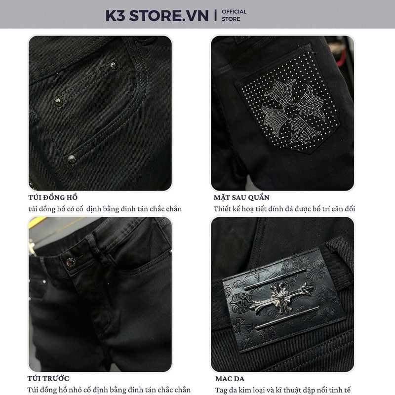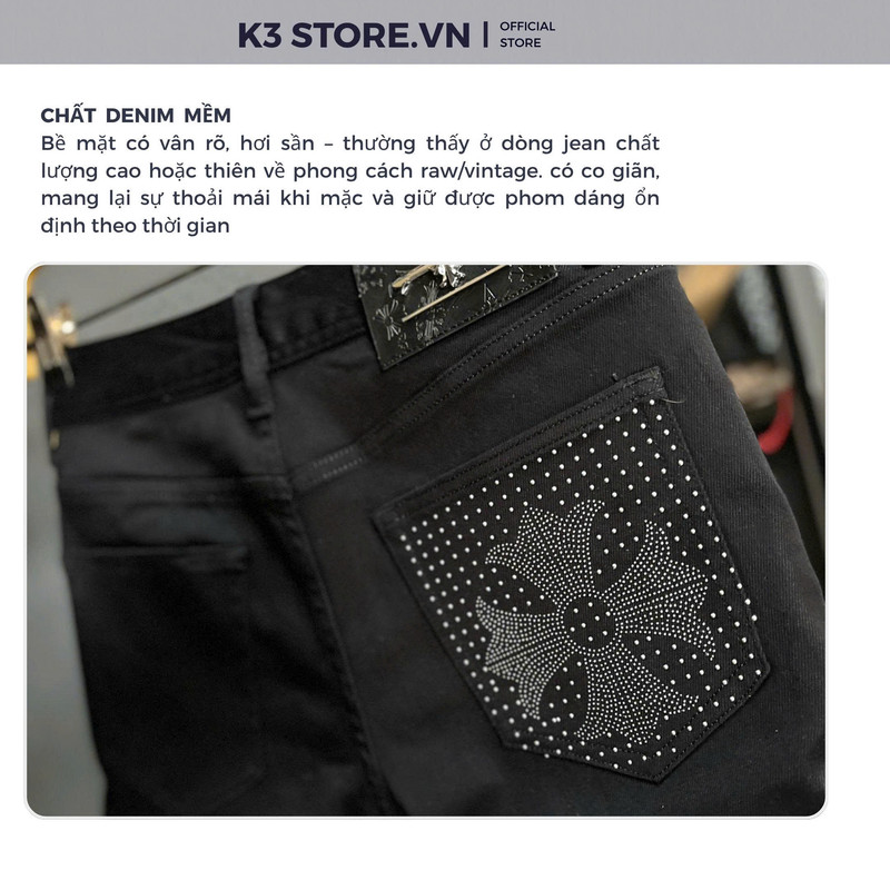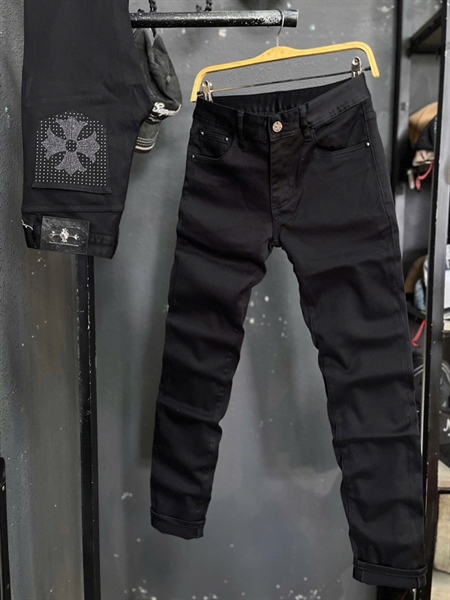 Jean Dài QCSC-A8899 Đen túi dập họa tiết đính đá