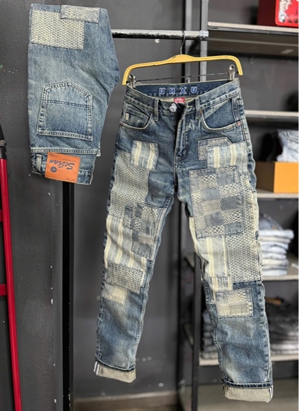 Jean Dài - QCUHX Siêu cấp - NH123 xanh đắp vá