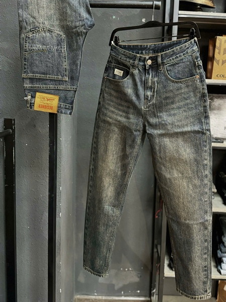 Jean QC G1XT-9006 ống suông chữ A xanh phủ Retro Des