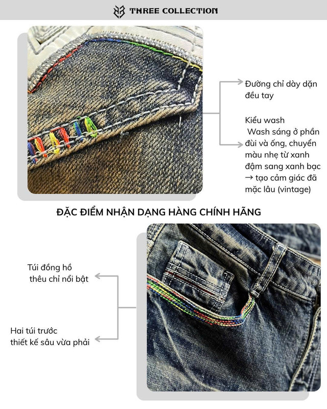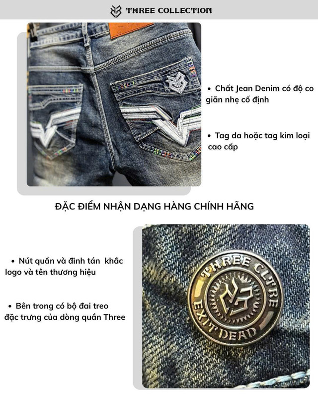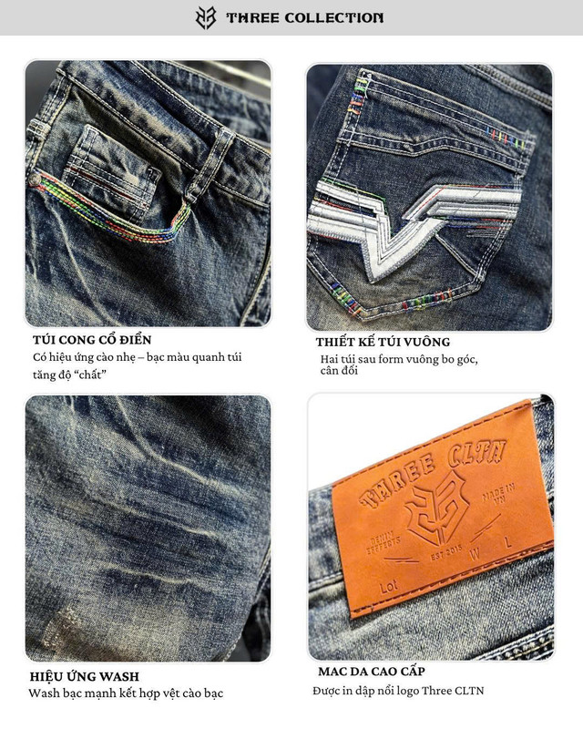 Jean Dài VIP -THREE CLTRE-0326 Xanh was mạng túi dập da logo