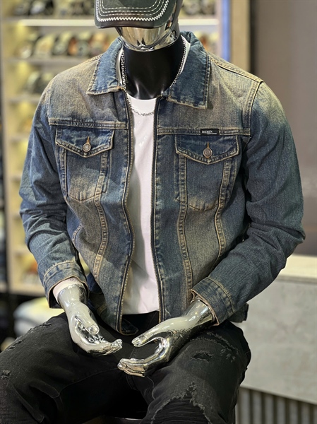 Khoác Jean QCSC-0096 xanh was đồng khóa kéo