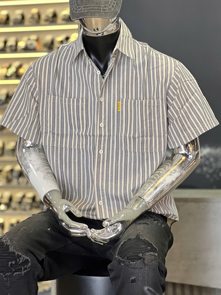 SM tay ngắn- from Boxy-QCY909 Sọc dọc Xám 2 túi